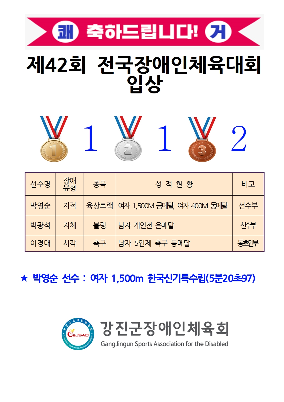 Á¦42ȸ Àü±¹Àå¾ÖÀÎüÀ°´ëȸ °á°ú