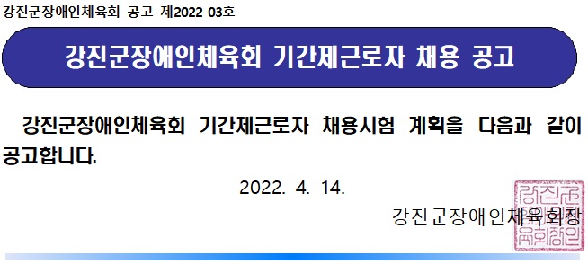 [°ø°íÁ¦2022-03È£] °Áø±ºÀå¾ÖÀÎüÀ°È¸ ±â°£Á¦±Ù·ÎÀÚ(°è¾àÁ÷) ä¿ë °ø°í
