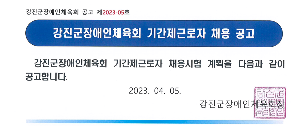 (°ø°í Á¦2023-05È£) °Áø±ºÀå¾ÖÀÎüÀ°È¸ ±â°£Á¦±Ù·ÎÀÚ (ÇàÁ¤º¸Á¶) ä¿ë°ø°í