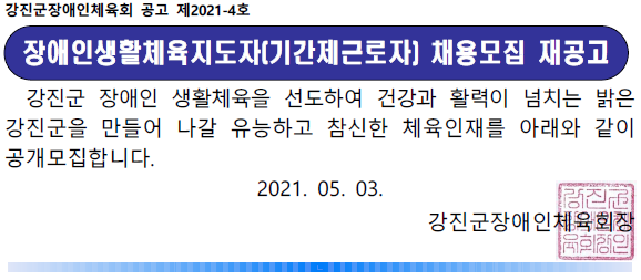 [°ø°í 2021-4È£] Àå¾ÖÀλýȰüÀ°ÁöµµÀÚ ¸ðÁý Àç°ø°í