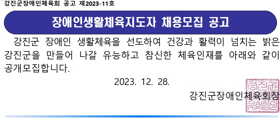 (°ø°í Á¦2023-11È£)°Áø±ºÀå¾ÖÀÎüÀ°È¸ Àå¾ÖÀλýȰüÀ°ÁöµµÀÚ Ã¤¿ë¸ðÁý °ø°í