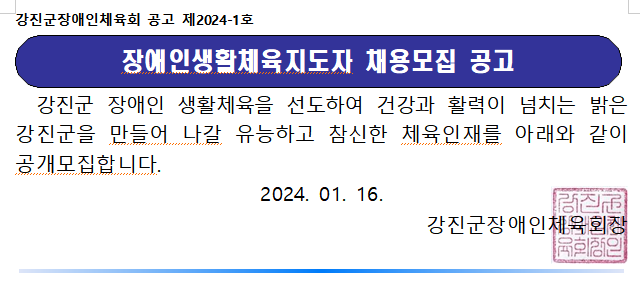 (°ø°í Á¦2024-1È£)°Áø±ºÀå¾ÖÀÎüÀ°È¸ Àå¾ÖÀλýȰüÀ°ÁöµµÀÚ Ã¤¿ë¸ðÁý °ø°í