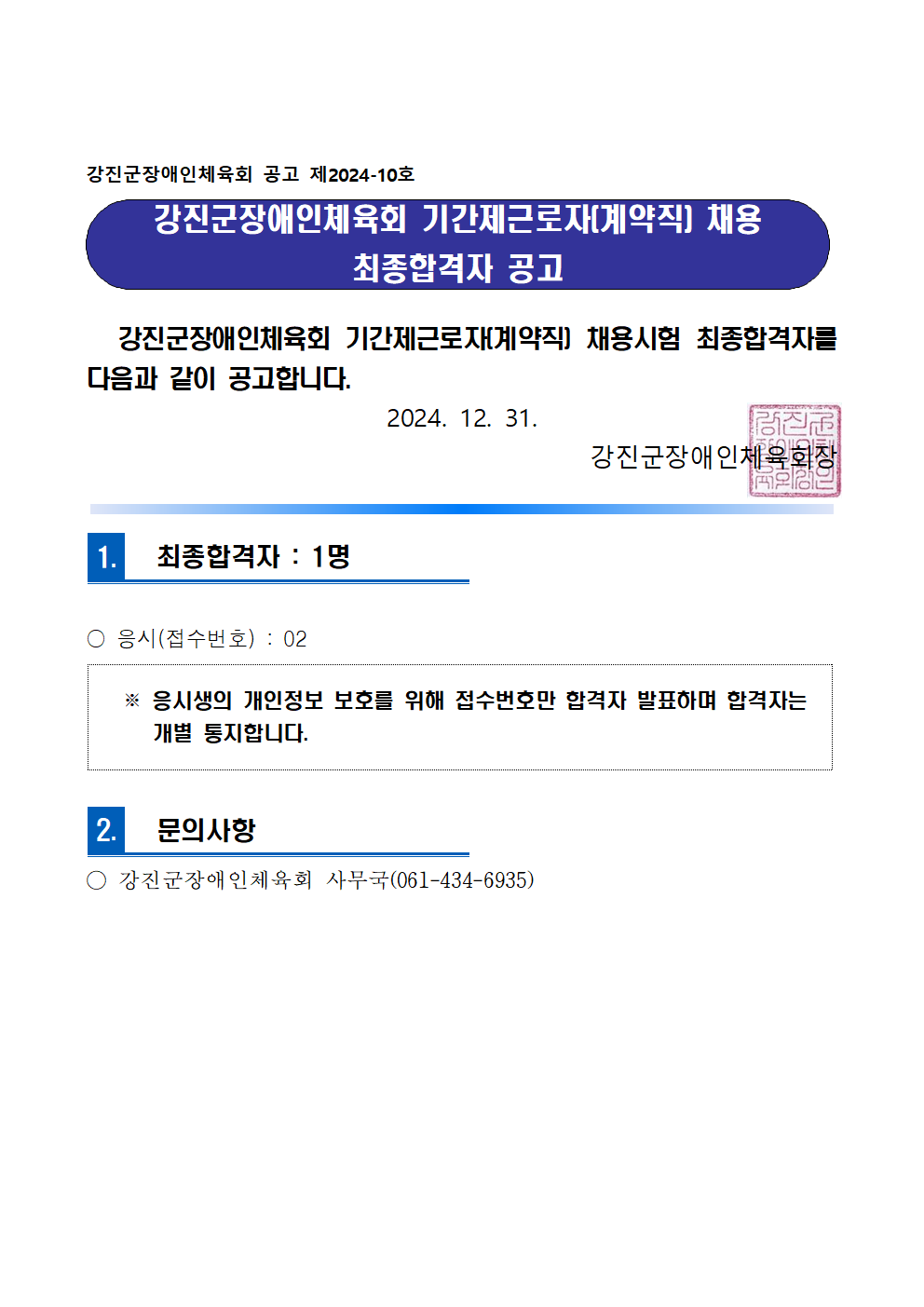 (Á¦2024-10È£)°Áø±ºÀå¾ÖÀÎüÀ°È¸ ±â°£Á¦±Ù·ÎÀÚ(°è¾àÁ÷) ÃÖÁ¾ÇÕ°ÝÀÚ °ø°í