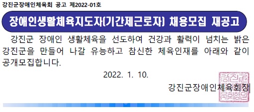 [°ø°í 2022-01È£] Àå¾ÖÀλýȰüÀ°ÁöµµÀÚ(±â°£Á¦±Ù·ÎÀÚ) ä¿ë¸ðÁý Àç°ø°í